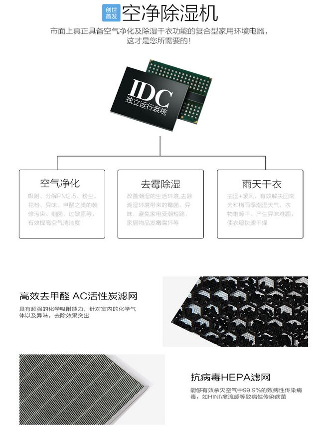 ◎控制系統(tǒng):超大觸控面板,動(dòng)態(tài)顯示,微電腦控制,多種除濕模式可選
